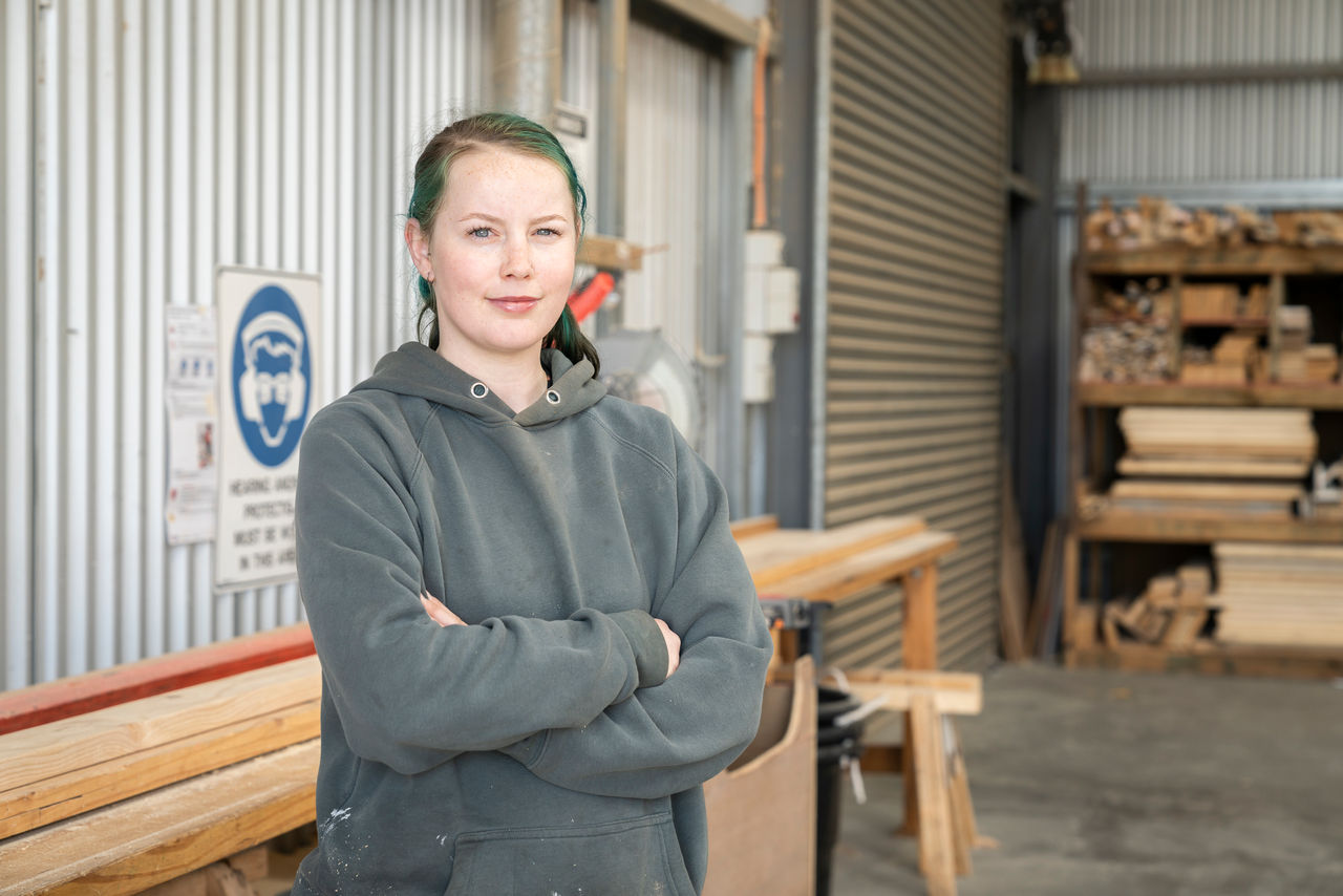 After a stint restoring historic trams in Bendigo and gaining hands-on experience with local builders, Kirra found her calling in carpentry.